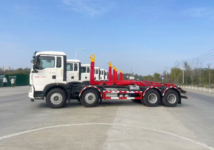 重汽前四后八勾臂垃圾车(又称车厢可卸式垃圾车)是市政环卫、垃圾清运领域的重要设备,其核心优势在于“一车配多箱”,可循环运输,显