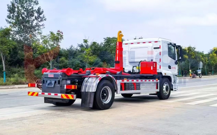 安全性能是环卫作业的重中之重。车辆采用高强度轻量化底盘设计,在保证承载能力的同时,有效降低车身自重,提升行驶稳定性。全系标配ABS防抱死系统、倒车影像、倒车雷达等安全配置,勾臂作业区域配备智能预警装置,当检测到人员或障碍物时自动停止作业,全方位保障驾驶员与周边人员安全。